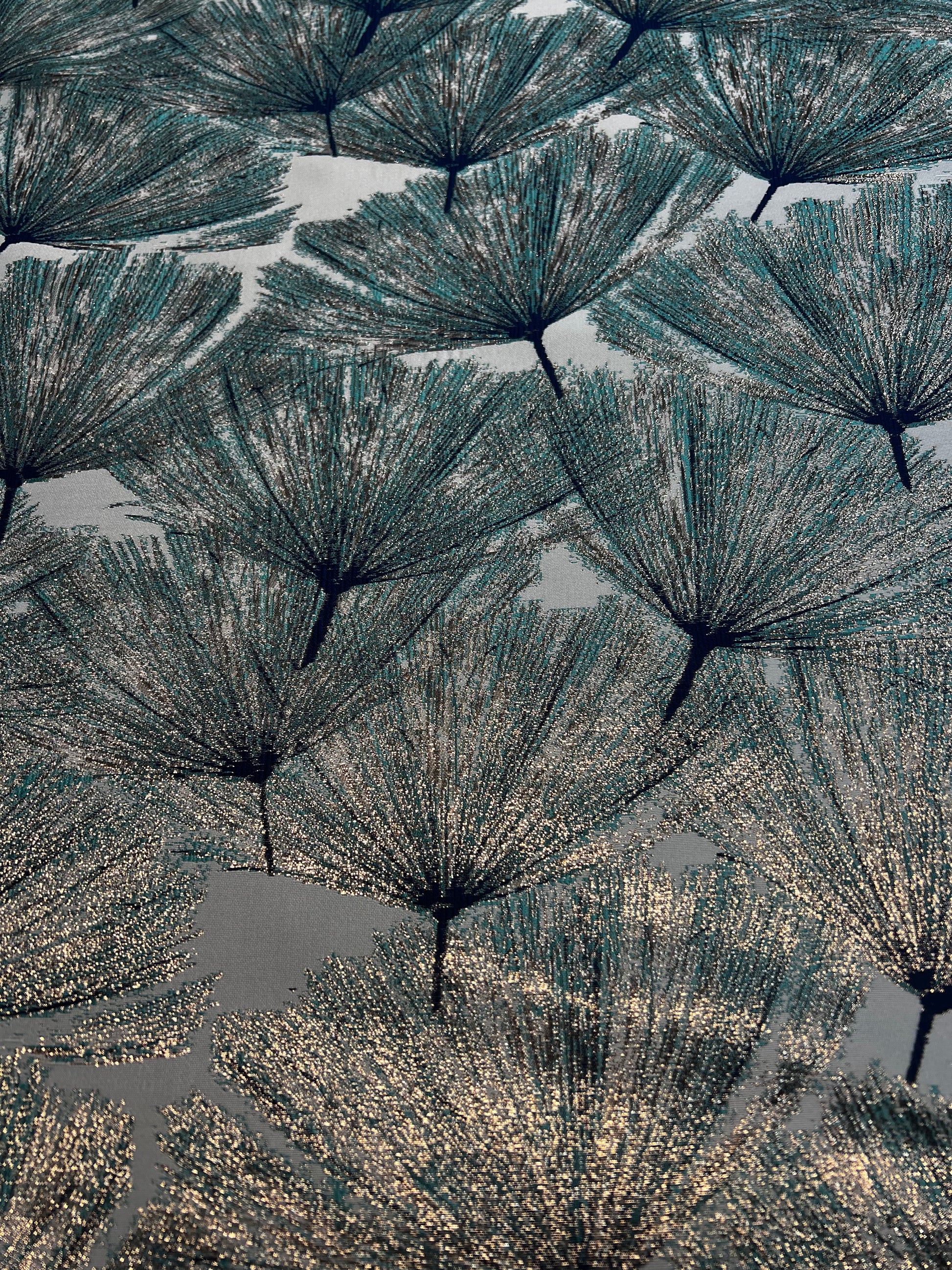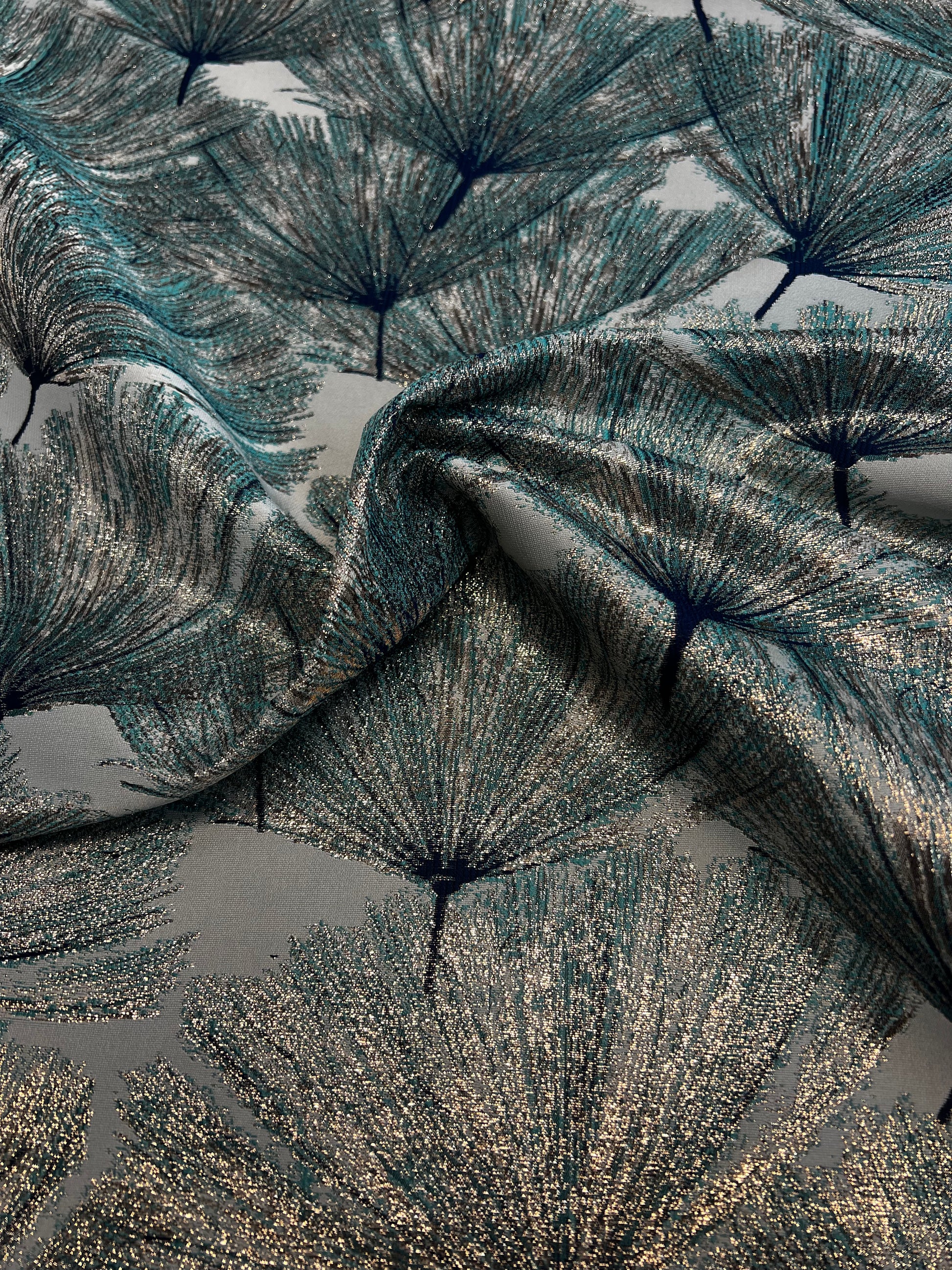 This navy and aqua brocade combines rich woven texture with a striking play of colour. The intricate patterning and contrast between deep navy and fresh aqua give the fabric a luxurious finish, perfect for structured garments like skirts, jackets, or standout occasion wear. Elegant and eye-catching, it’s a fabric made to impress.