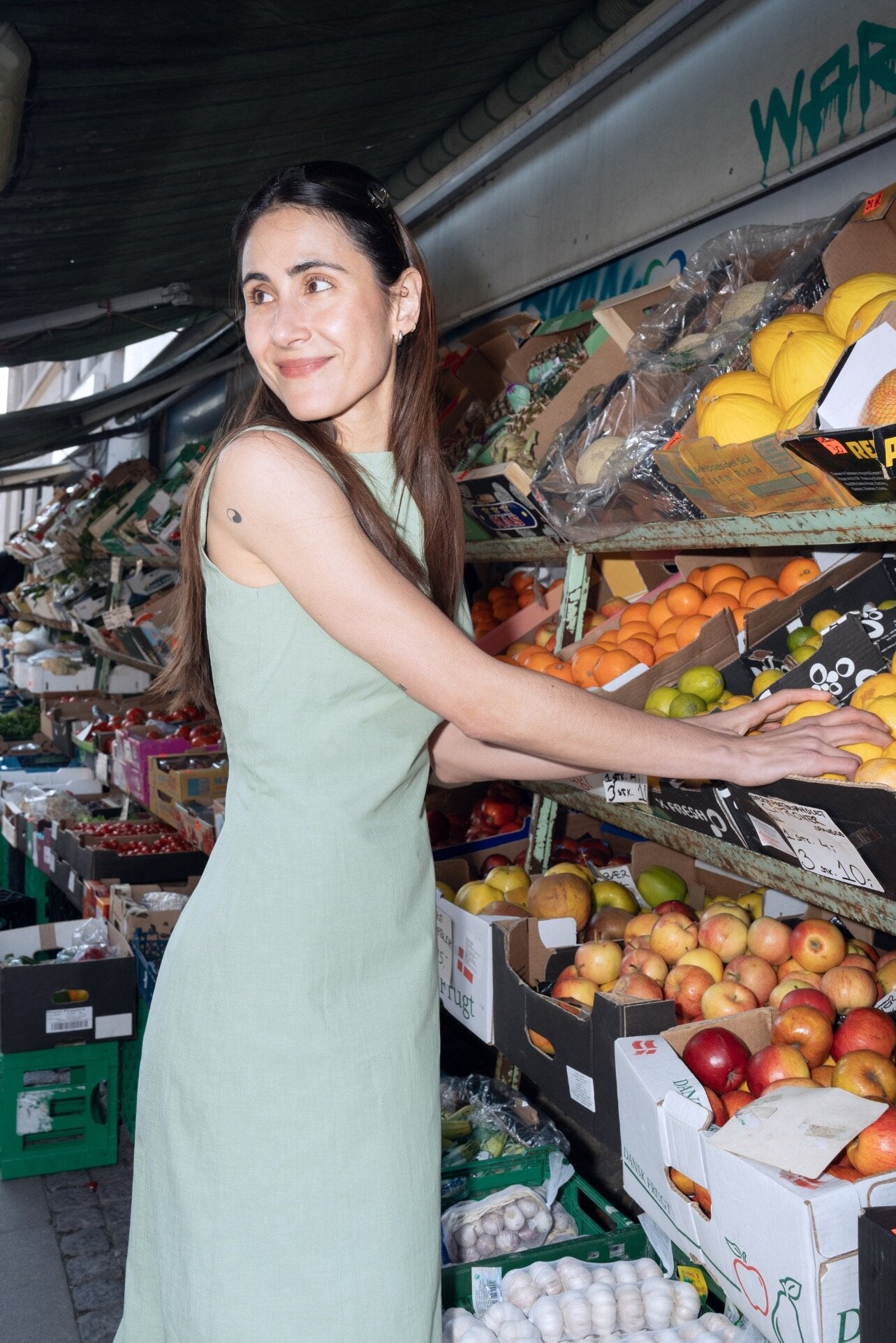 This pattern is designed for woven fabric types. Choose fabrics with a bit of elastane for greater flexibility. Fabric types such as poplin, woven viscose, and cotton twill all work well for this dress.