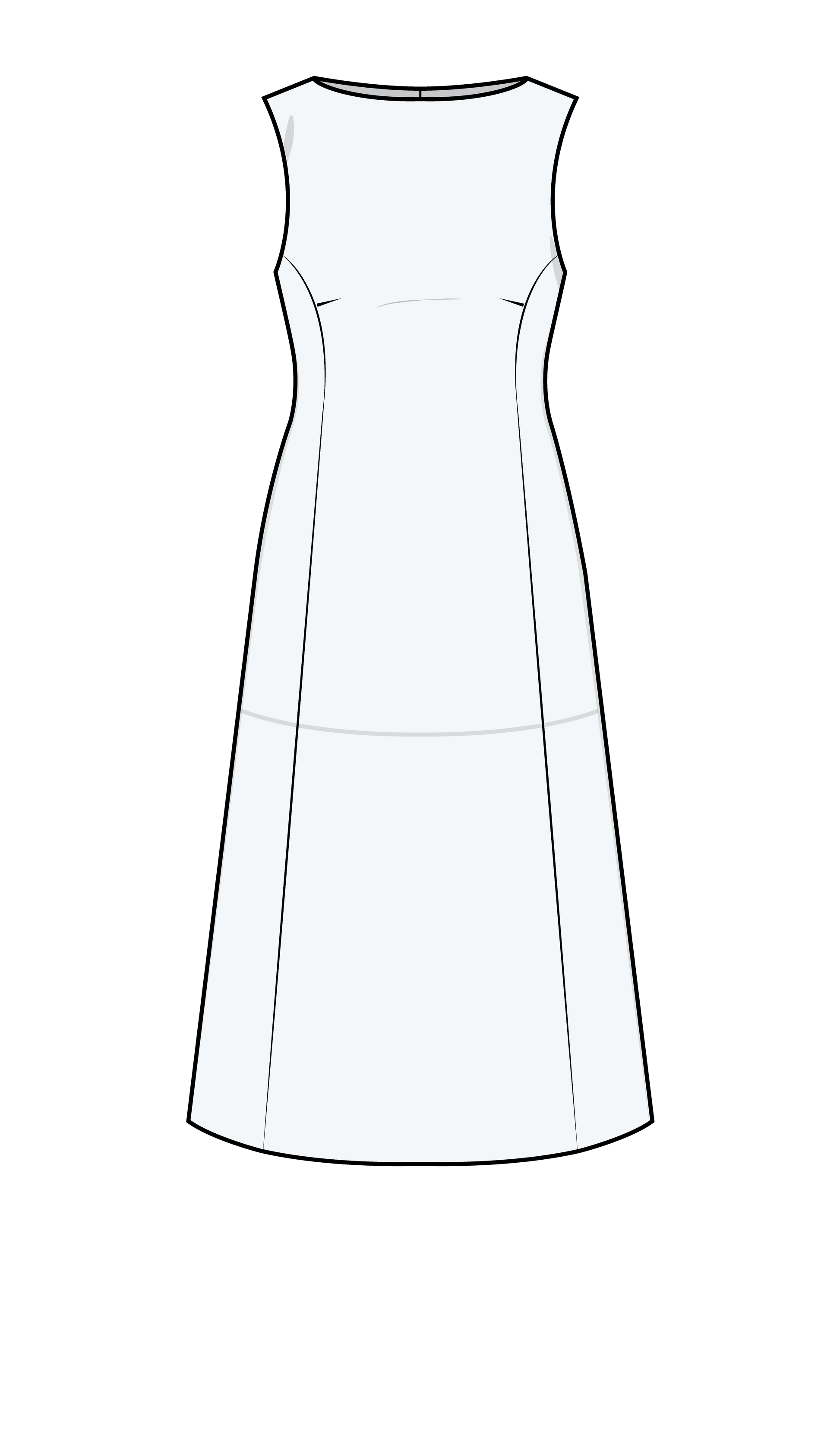 In this bundle we have combined the BOATNECK Dress with the TEE Sleeve. The BOATNECK dress is fitted around the upper body, and it has width from the hips down.