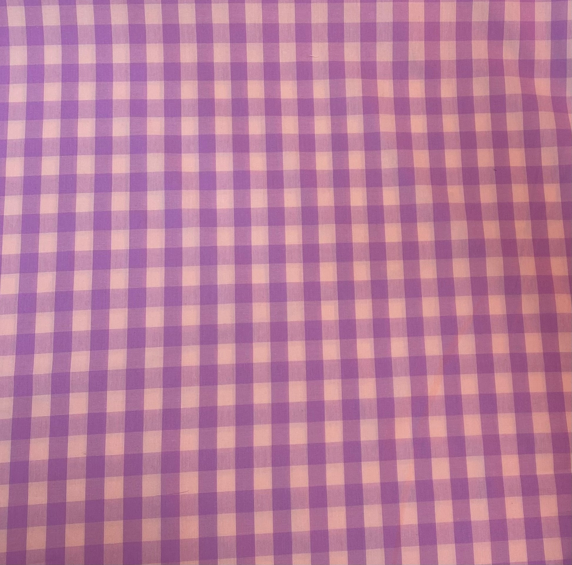 This charming cotton fabric features a delicate check pattern in soft lavender and fresh green and soft lavander and orange. The yard-dyed technique ensures that both the warp and weft are dyed before weaving, creating a rich, vibrant pattern that is both durable and visually striking. The subtle interplay of cool lavender and earthy green makes it a versatile choice, perfect for a variety of projects from cozy shirts and dresses to stylish home decor pieces like tablecloths or cushions.