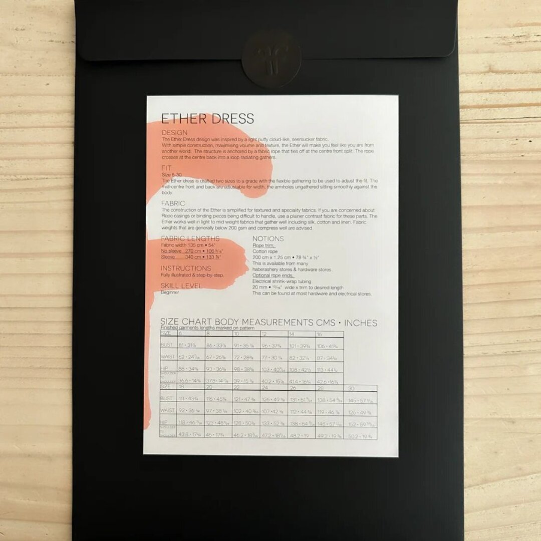 The construction of the Ether is simplified for textured and speciality fabrics. If you are concerned about Rope casings or binding pieces being difficult to handle, use a plainer contrast fabric for these parts. The Ether works well in light to mid weight fabrics that gather well including silk, cotton and linen. Fabric weights that are generally below 200gsm and compress are well advised.
