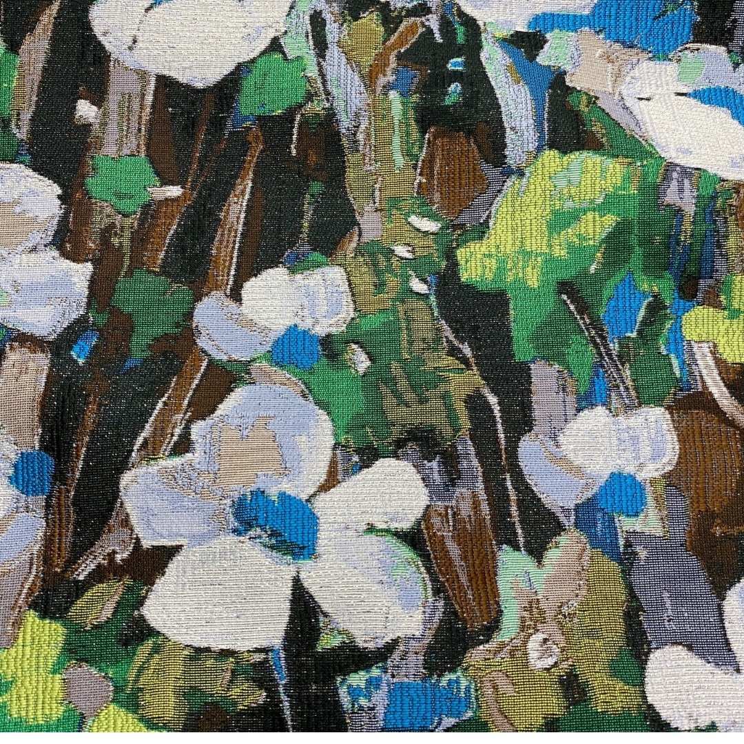 This stunning brocade is a mix of metallic goodness and floral delights, set in two colour-ways. The blue variation perfectly brings together silvers, greens, browns, blues into an abstract contrast of earthy tones and shimmers. The pink combines oranges, purples and creams into a stunning autumnal feeling fabric. Brocade is created by intricate techniques that weave designs into the fabric, rather than printed or embroidered onto the surface. It is a high quality technique usually associated with formal wear, that creates raised designs emphasising the surface contrast and colours. It is a medium weight fabric with a light drape, that will give a little structure to your makes without sacrificing movement.