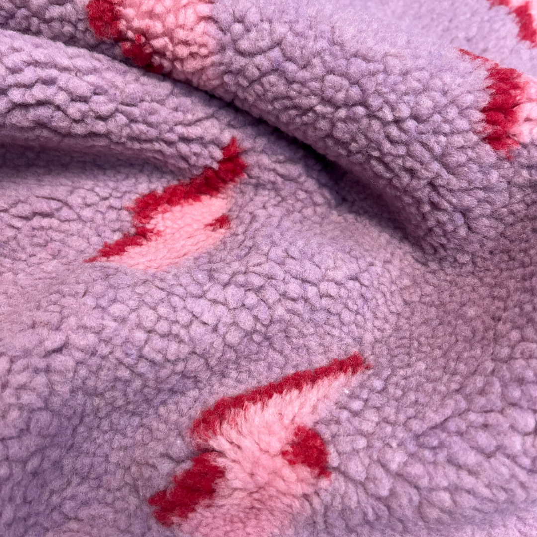 If you're looking for the ultimate cosy-season project fabric… this is it. Our lilac sherpa fleece is soft, snuggly and covered in bold jacquard-woven lightning bolts – the perfect balance of cute and cool. Whether you're sewing for winter walks, couch-days or just want to wrap yourself in something extremely cosy, this fleece is ready for it.