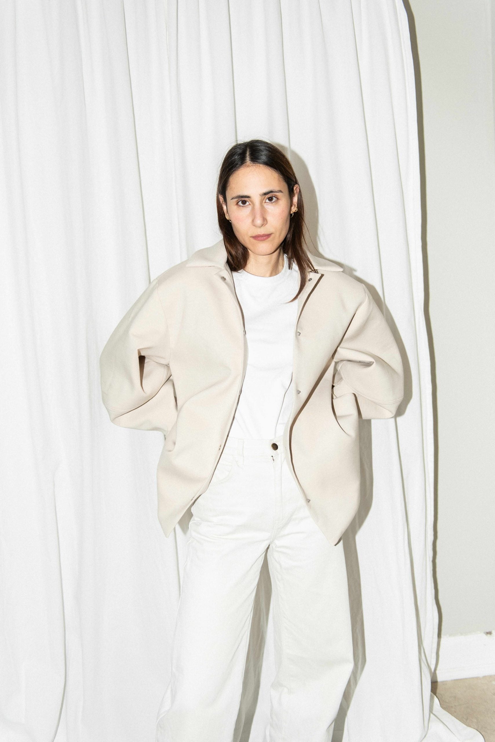 This pattern is made for woven fabrics such as canvas, denim, quilted fabric, coating wool and oilskin works well for this pattern.