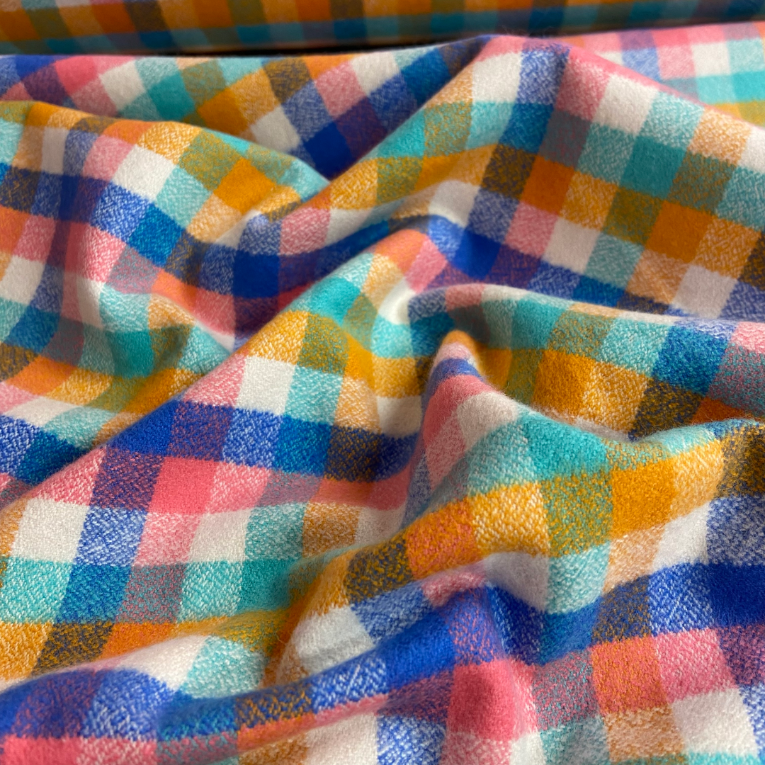 The Mammoth Junior Flannel collection consists of smaller scaled plaids in a bright yet soft palette. Ideal for shirts, shackets, skirts or dresses (or anything in between) this flannel is the perfect addition to any autumn wardrobe. Available in four lovely colour-ways: Sunrise, Nutmeg, Ivory and Cardinal.