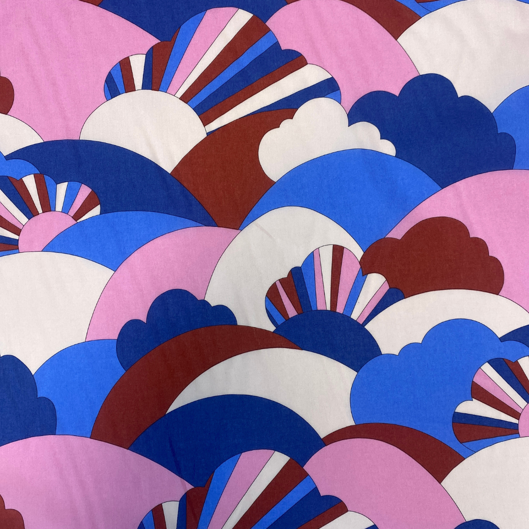 Hand painted in the Liberty studio, Over the Hills embodies the creative charisma of Bernard Nevill, the renowned British designer and Liberty’s design director of the 1960s. This bold geometric was inspired by Nevill’s distinctive approach to portraying landscapes. This print is part of The Cast act of Retold, bringing into the spotlight this play’s cast of architects, writers, artists, and designers have paved the way for the artistic movements Liberty have heralded since our doors first opened - leading figures that have played an integral part in weaving new narratives into the fabric of the building.