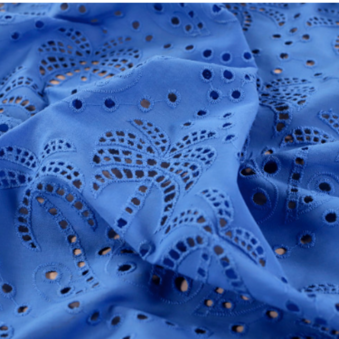 Featuring a detailed palm tree design this broderie anglaise dressmaking fabric is defined by characteristic cutwork and detailed embroidered elements throughout. This fabric would be perfect for creating beautiful eye catching summer dresses, blouses, skirts.