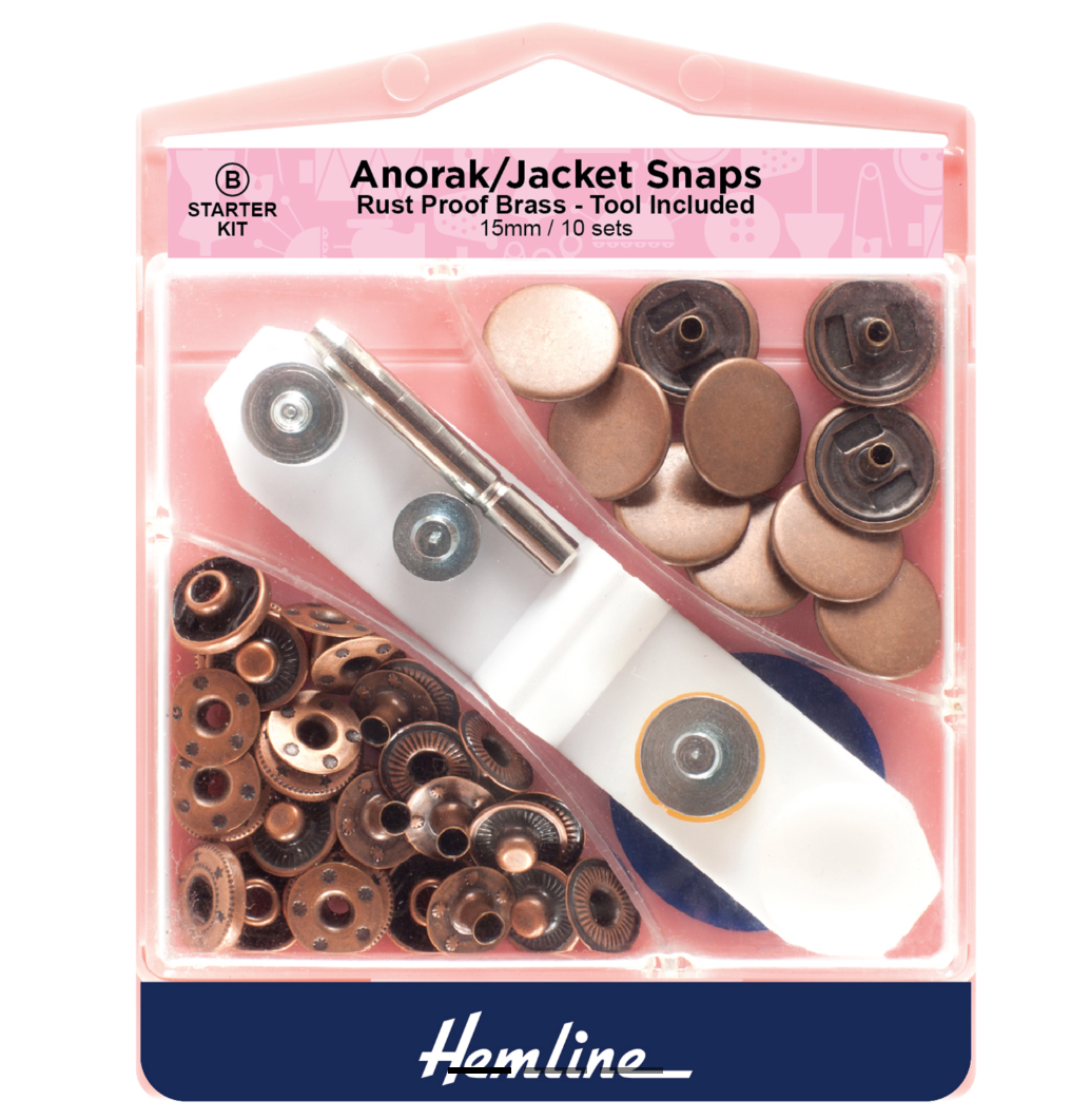 Hemline Anorak/Jacket Snaps – 15mm (10 Sets + Tool)