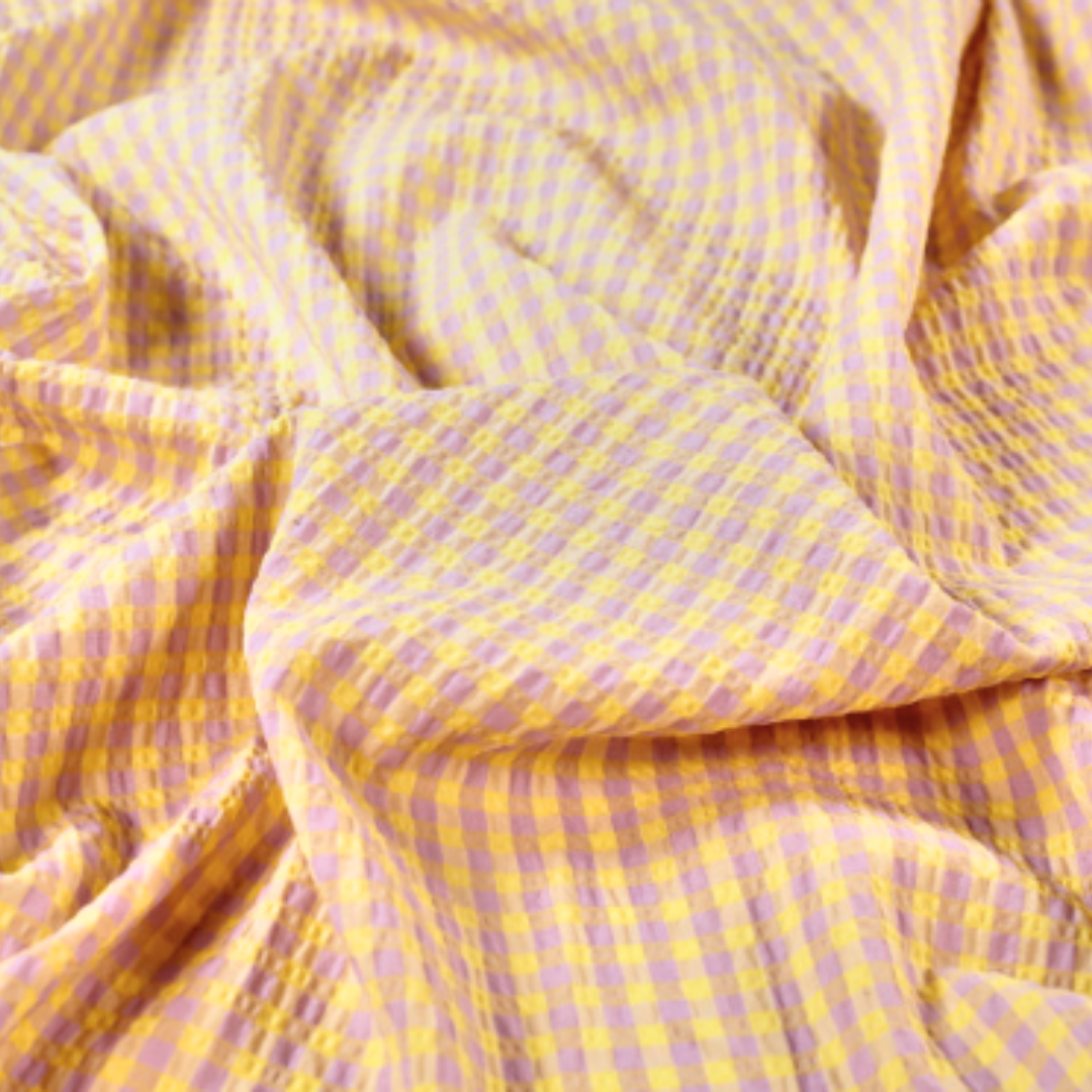This dreamy small-scale gingham seersucker is giving us all the summer sewing vibes! With its subtly puckered, textured finish and lightweight feel, it's perfect for adding a bit of interest to your me-mades without the fuss. The woven check keeps things classic, while the seersucker texture gives it that breezy, slightly structured look we love.