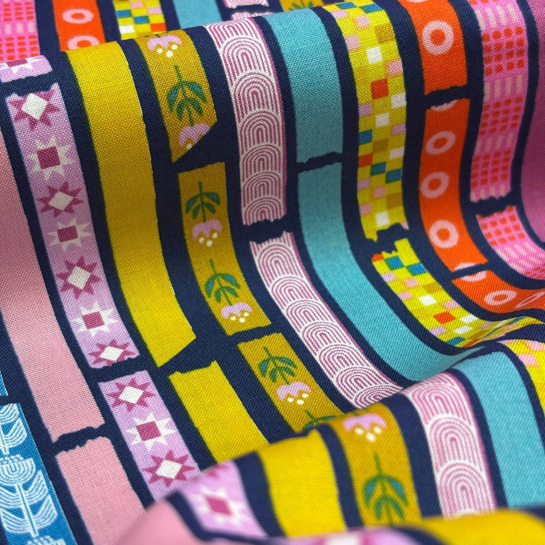 Yay its tape! is a versatile cotton that combines texture, durability, and style in one beautiful fabric. Available in two timeless shades – Blue Berry and Natural, this fabric features Rashida’s modern plus-sign motif with a subtle washi tape-inspired vibe!