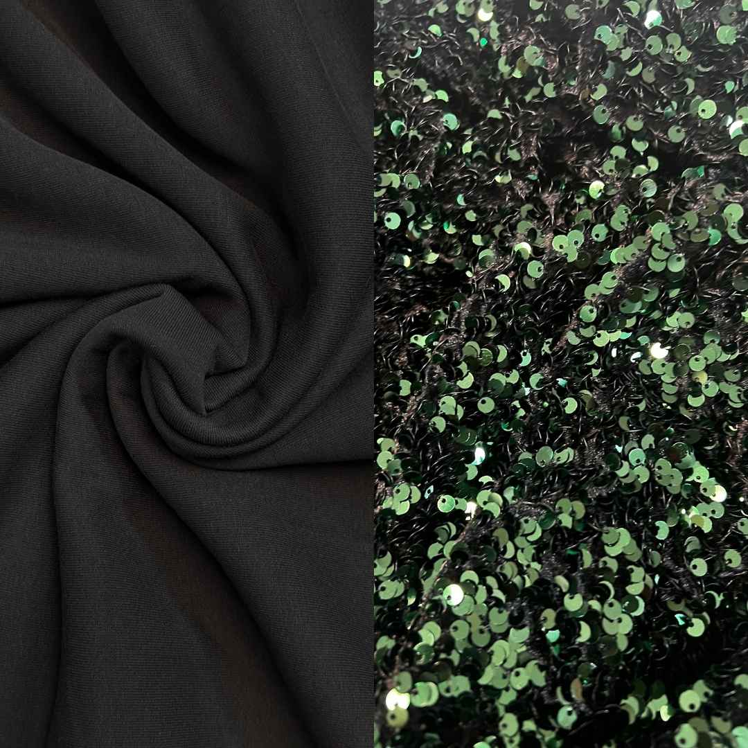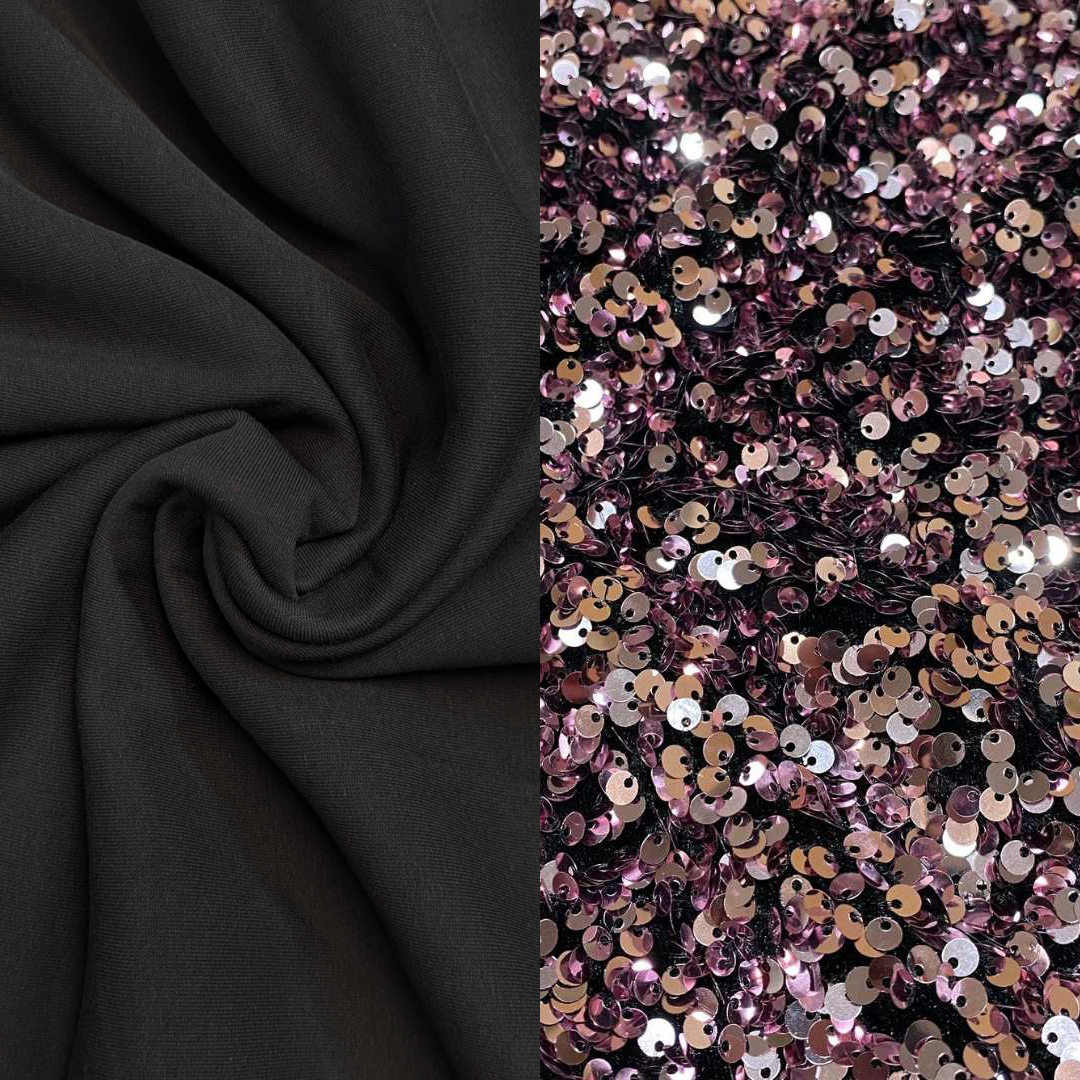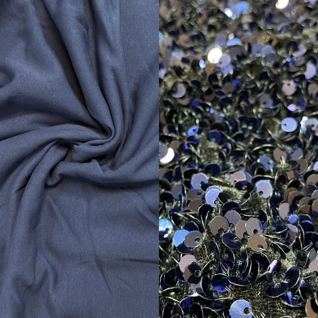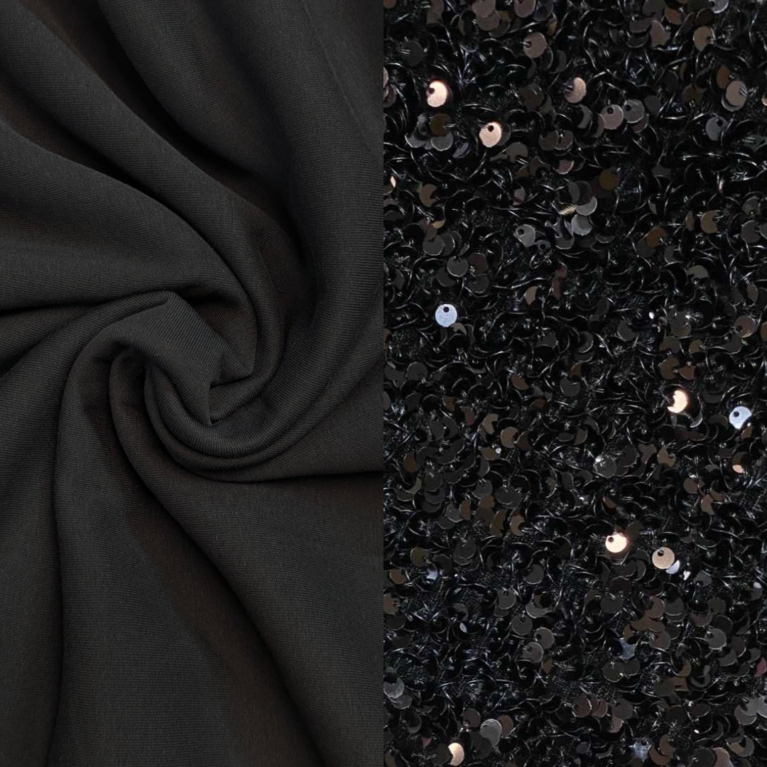 You'll get enough fabric in this kit to make a top with a sweatshirt bodice and sequin sleeves in all sizes in the Tilly and The Buttons Drew pattern size chart. You could use leftover sweatshirting for the cuffs and collars or use the velour selvedge from the sequin fabric. You really have so many options with this project and the pattern is definitely something you'd make over and over again!