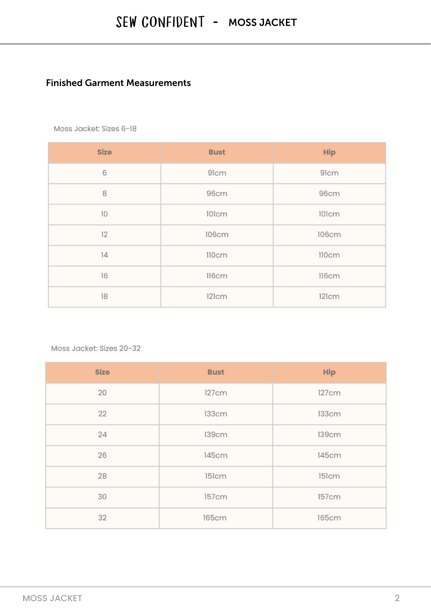 Size: 6-18 - 2m 140cm wide fabric for outer, 1m 140cm wide fabric for hood and pocket lining.