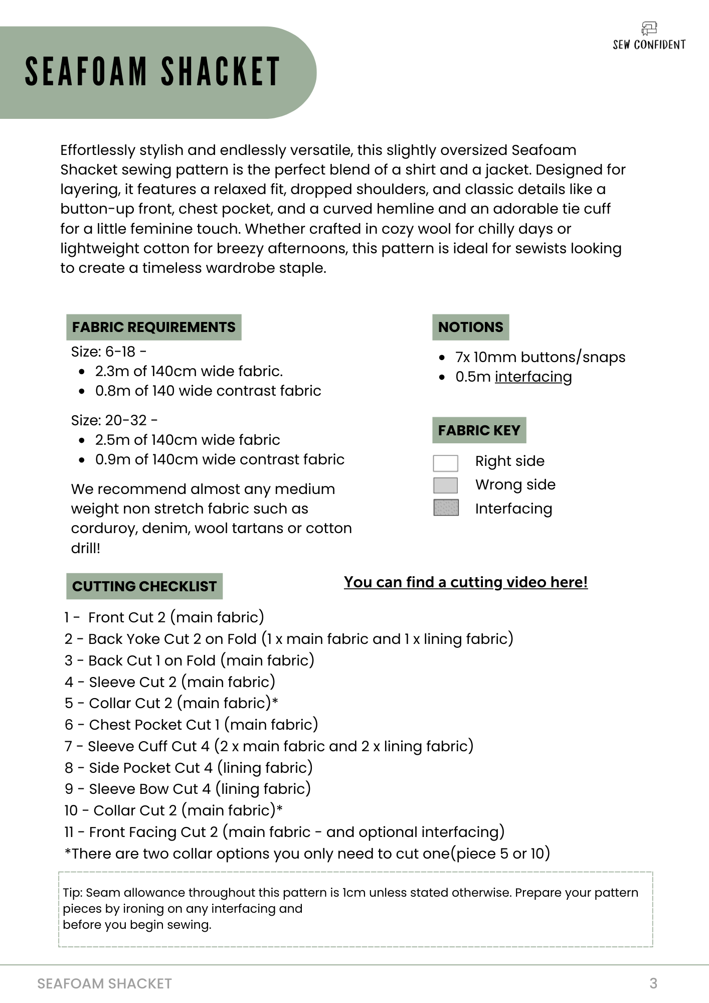Whether you're expanding your handmade wardrobe or looking for a satisfying weekend project, the Seafoam Shacket is a modern must-have that’s as fun to make as it is to wear.