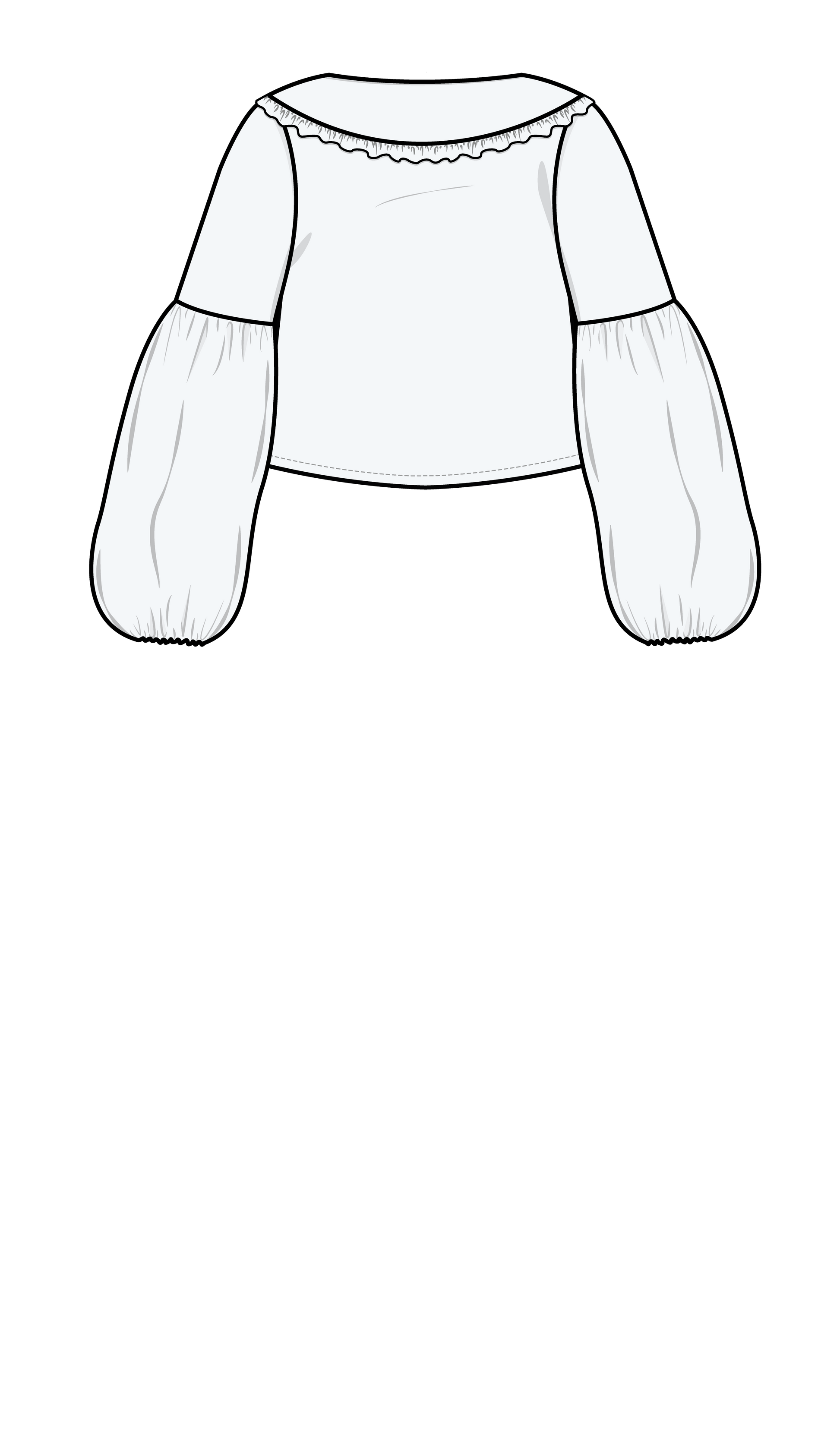 The LANTERN sleeve is a two piece sleeve, with a t-shirt like upper sleeve and voluminous lower puff style sleeve. The sleeve hem is gathered with an elastic band.